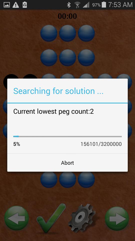 根据板的布置,求解器可以花几秒钟到几分钟才能找到解决方案。由于这可以降低电池电量,因此建议在求解器运行时将手机插入充电站。该游戏的免费版本将找到一种解决方案,该解决方案仅导致至少3个钉子。付费版本可以找到带有1个钉的解决方案。