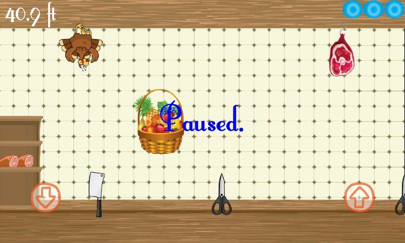 一只鸟试图逃脱一家屠夫。帮助他尽可能地经历。上下躲避事情。在中间取果可以帮助您恢复能量。