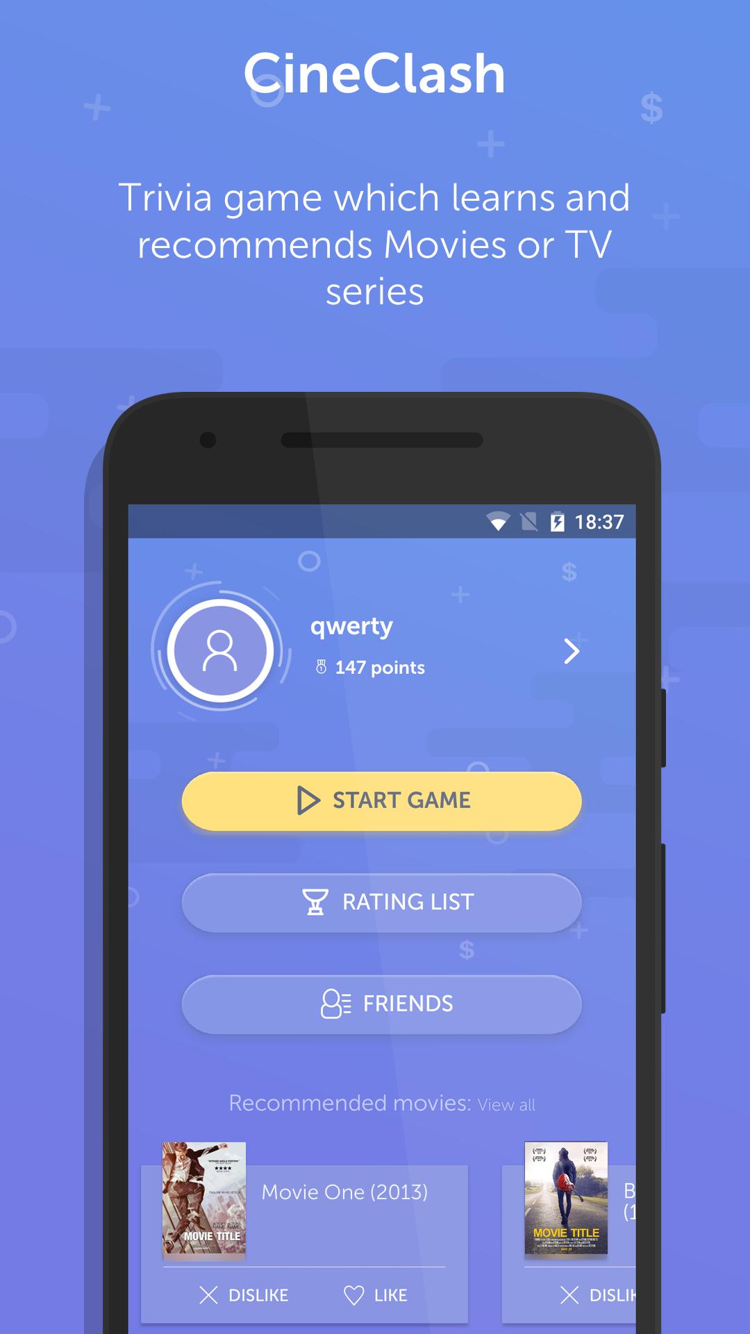 CineClash是唯一可以学习一些有关您的东西并推荐您相应观看的东西的琐事游戏。