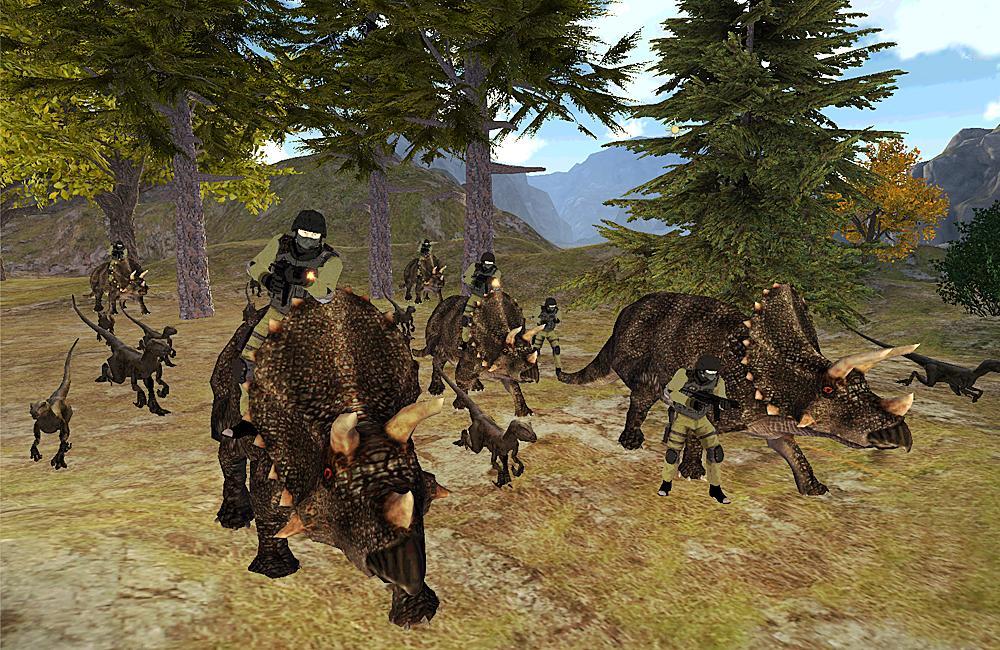 当他追捕熊,狼,猛禽,三角龙和霸王龙雷克斯时,他控制着这个巨大的恐龙。