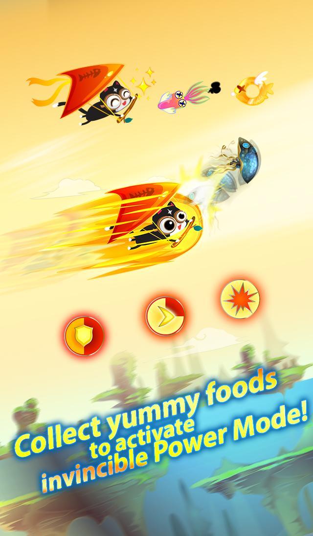 - 收集大量美味的飞行食物以激活动力模式并击败敌人