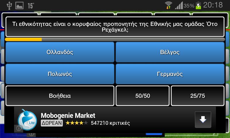 关于希腊足球的测验游戏。