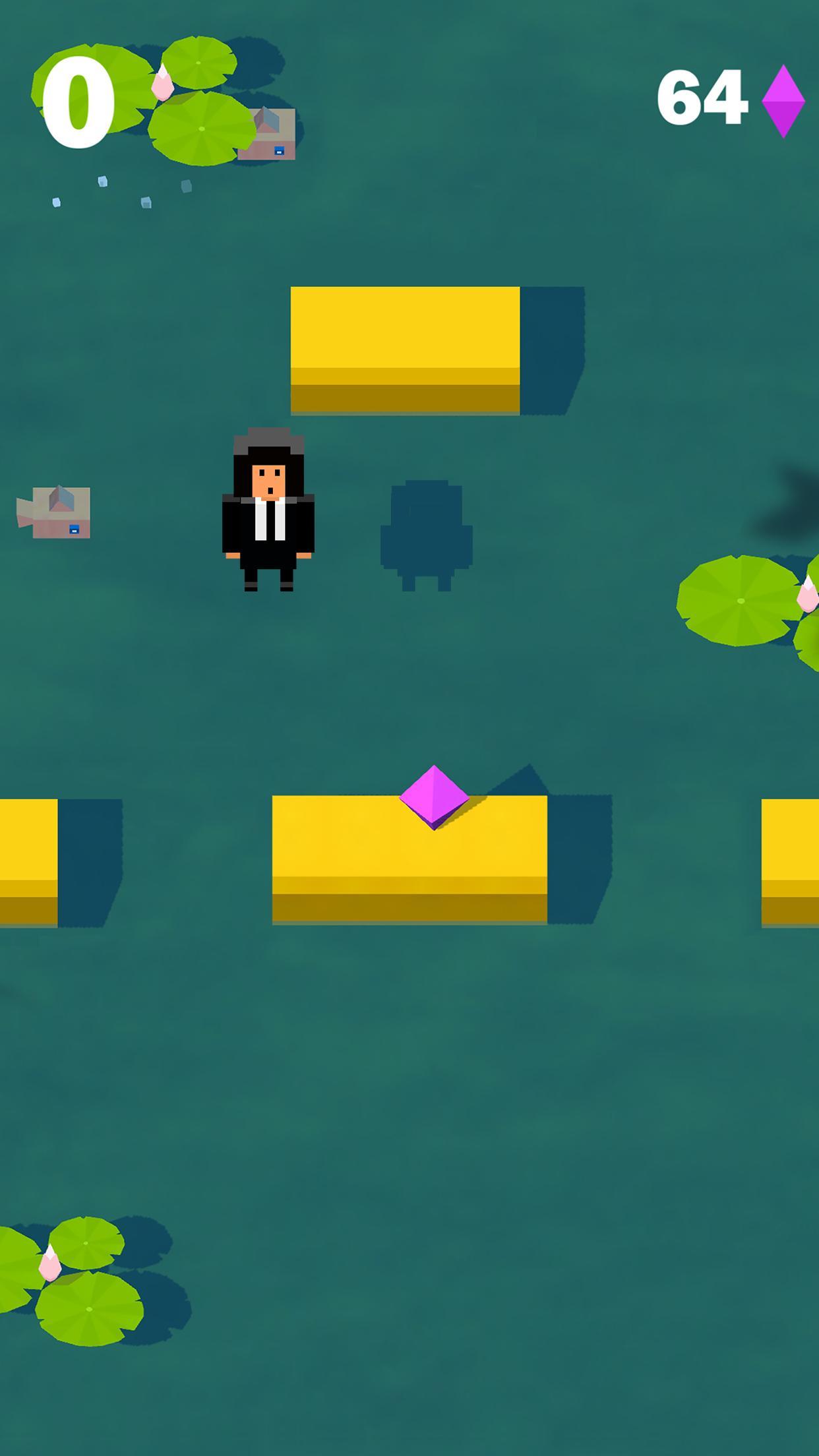 只需瞄准下一个平台,然后点击屏幕即可跳过河。在旅途中收集钻石,并解锁大量角色。