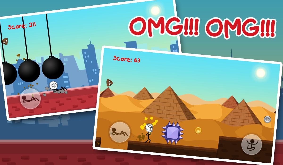 像其他跑步者一样,游戏很简单,您所需要的只是点击跳跃和滑动。有了热闹的巨魔,您将使您感到高兴,并帮助他尽可能地跑步。在途中,有很多陷阱正在等待trollface。从致命的车轮,尖峰到大巨型铁球,然后在巨魔脸上扔砖。但是要小心,有很多惊喜陷阱,可以找出答案。尝试收集尽可能多的硬币,您可以使用这些硬币重生。