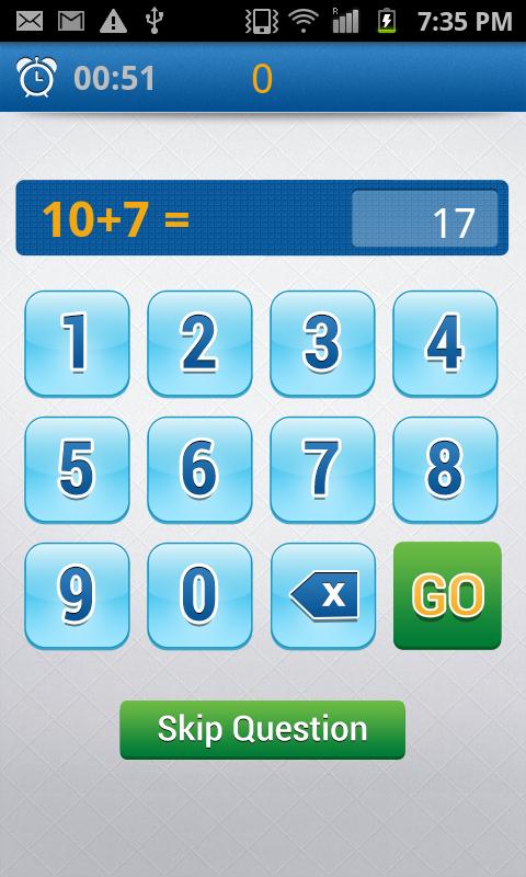 您和一个朋友有60秒钟可以回答尽可能多的简单数学问题。当60秒结束时,得分最高的人获胜。在刺激您的思想的同时玩得开心。提高清晰度和准确性,并训练您更快地思考。非常适合各个年龄段!几乎喜欢玩Ruzzle,但是有数字!