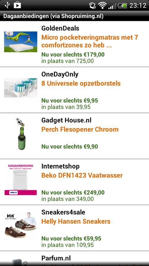 另一方面,您的前任告訴我們,通過安裝此應用程序,他們不再需要每天訪問數十個不同的網站,例如Ibood,Blokker,MediaMarkt,Bobshop等...