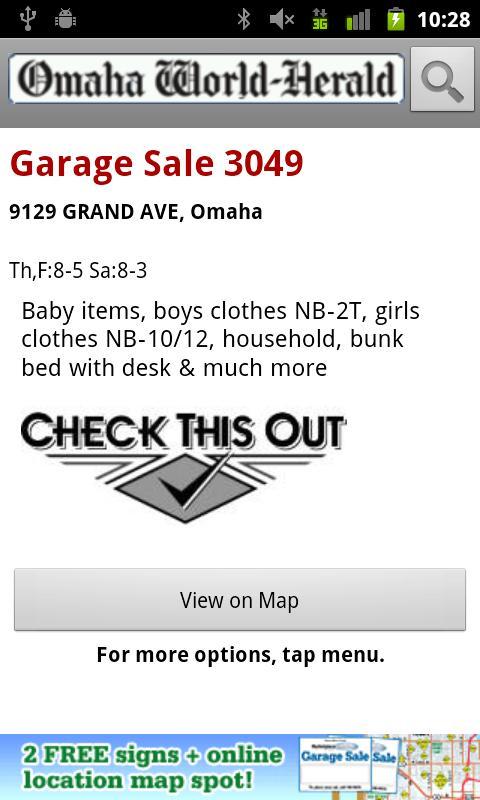 尋找車庫銷售的路線和繪製路線可能會很耗時和令人沮喪:過時的信息或沒有本地列表。但是,借助奧馬哈世界赫拉德(Omaha World-Herald)的車庫銷售應用程序,您可以通過在旅途中搜索當前的本地廣告來節省時間。這是找到您附近的車庫銷售的最簡單,最可靠的方式。