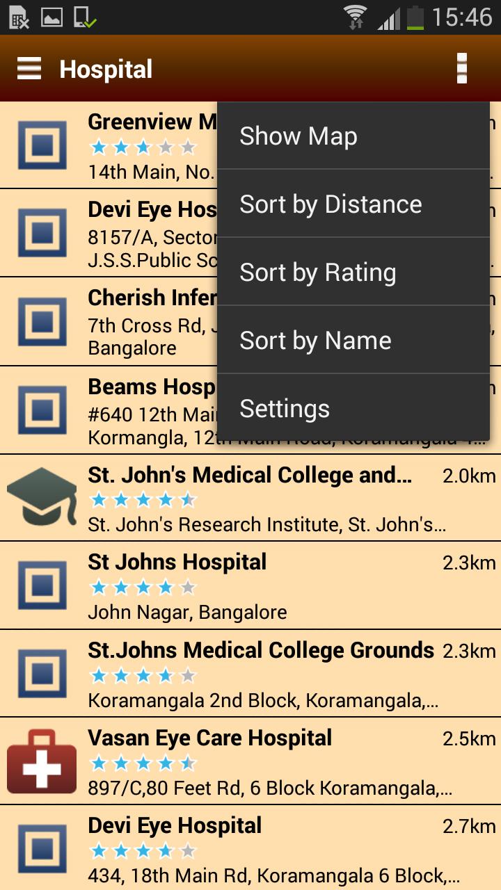 3.用戶可以看到更多地方的更多詳細信息,例如名稱,phno,Web URL,評級,距離當前位置和地圖的距離。