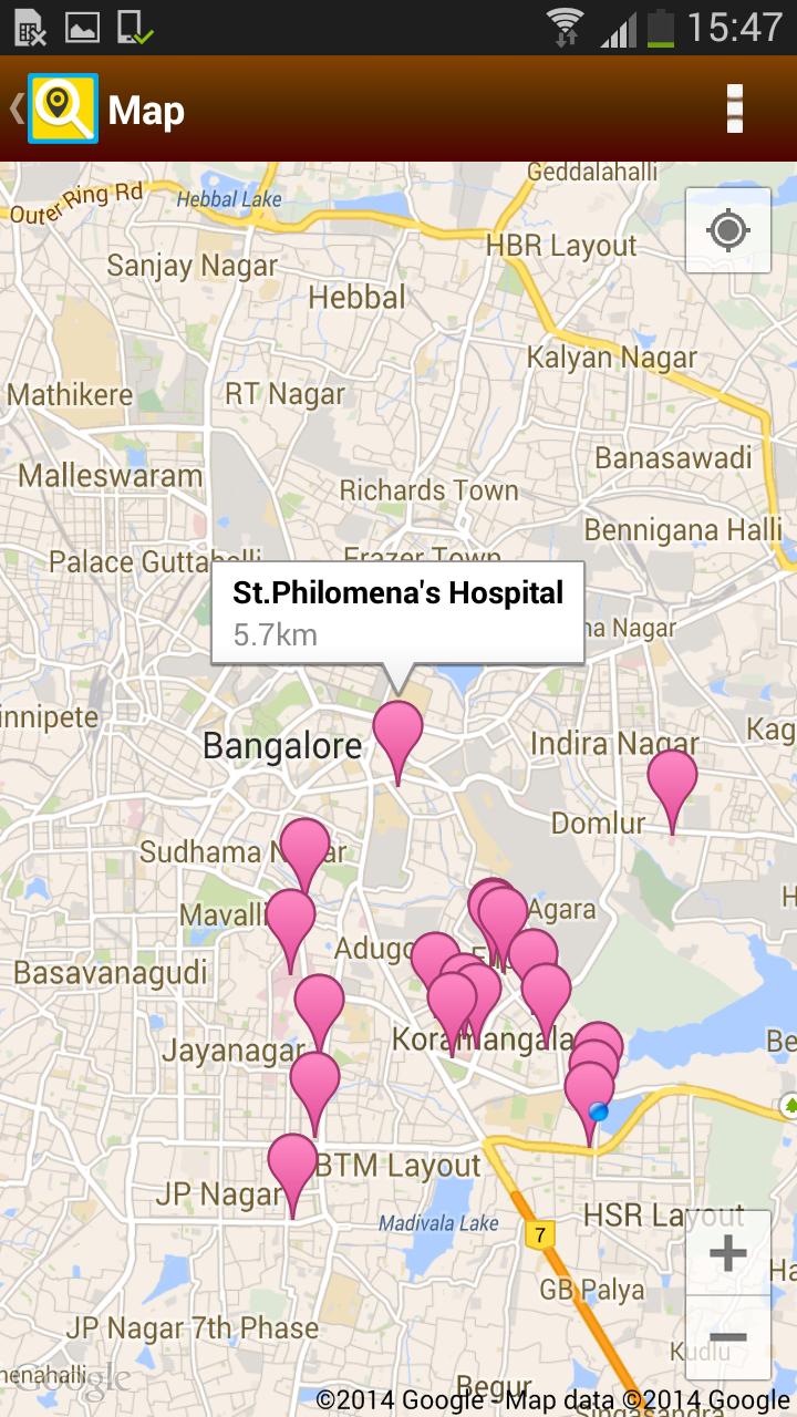 2.此應用程序會自動檢測到用戶位置,並可以讓用戶搜索附近的醫院,銀行,餐廳,ATM或用戶想要搜索的任何地方。