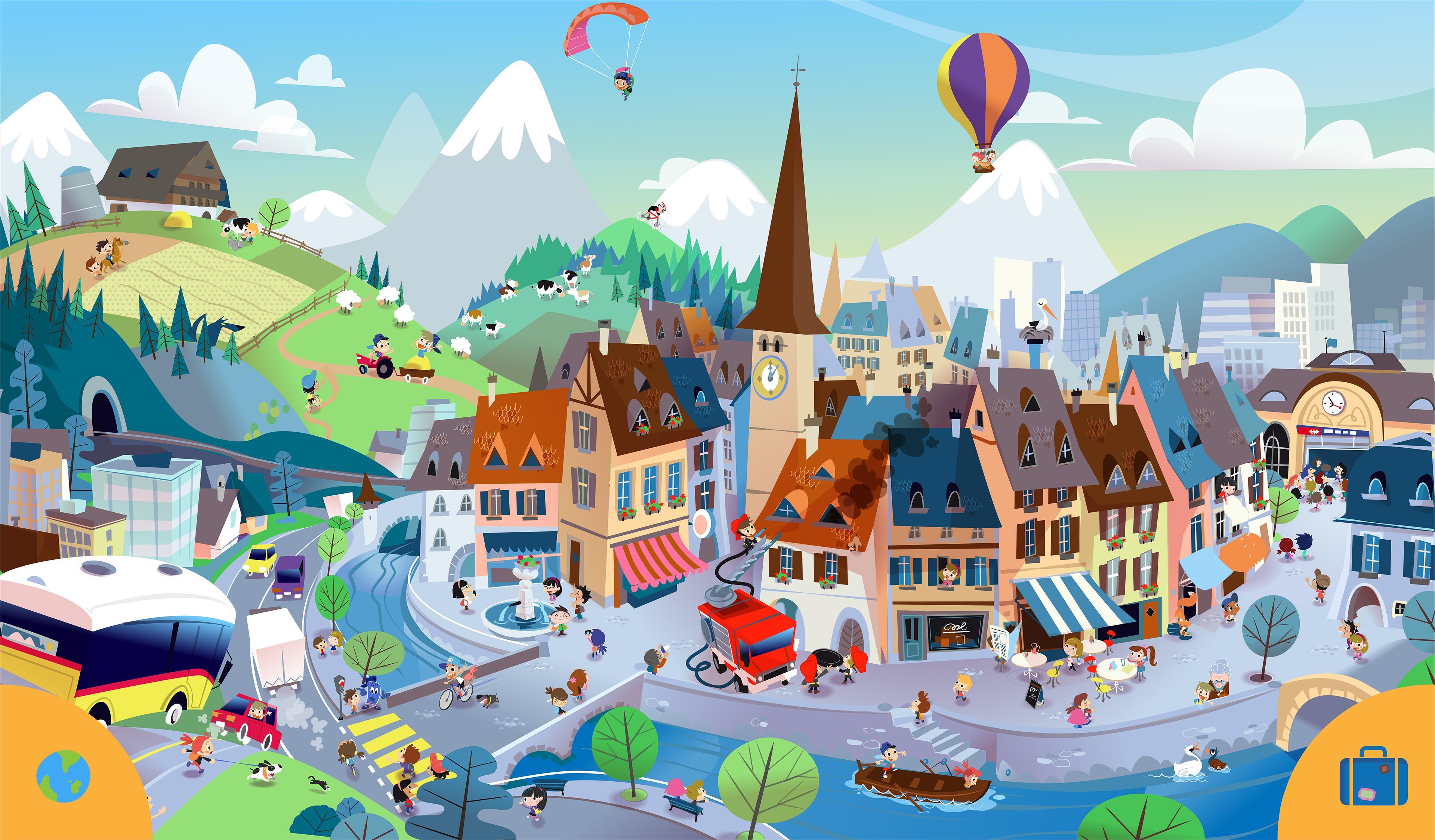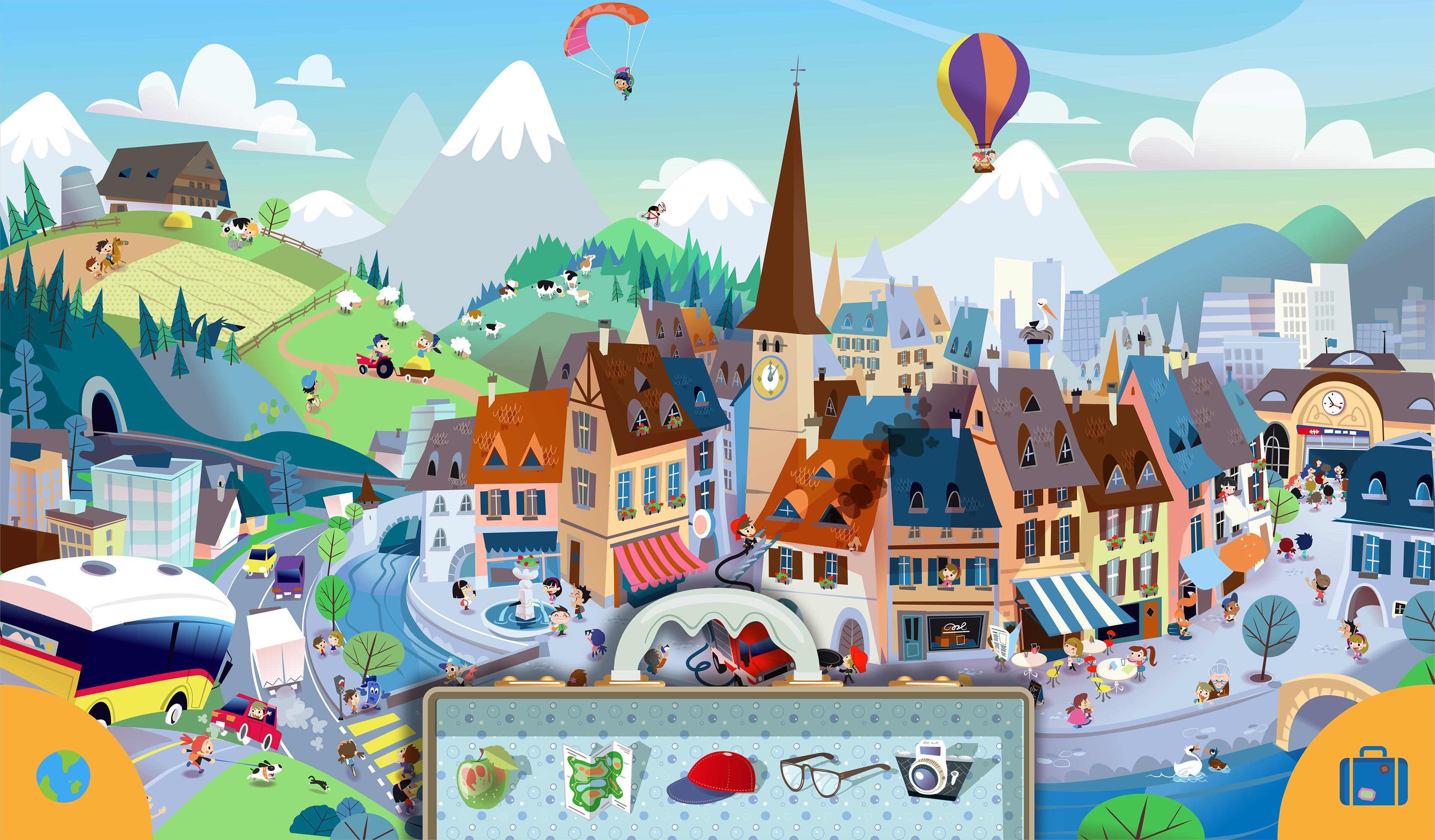 兩個朋友塞萊斯特(Celeste)和羅比(Roby)乘火車去探索瑞士。每次他們打破旅程時,都會發現很多新事物。當然,他們絕對喜歡這次旅行,但是因為周圍的所有奇妙景像都如此震驚,所以他們也會迷路並失去行李。您能幫助兩個朋友再次找到對方並找到他們丟失的東西嗎?