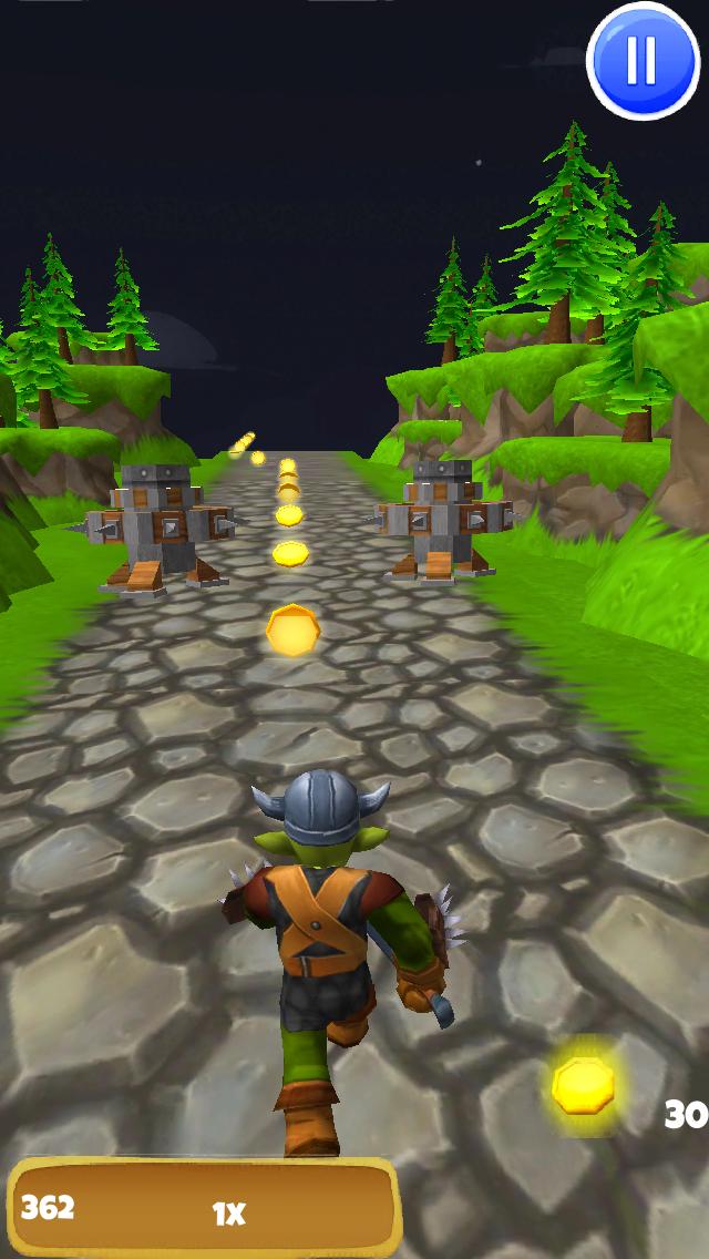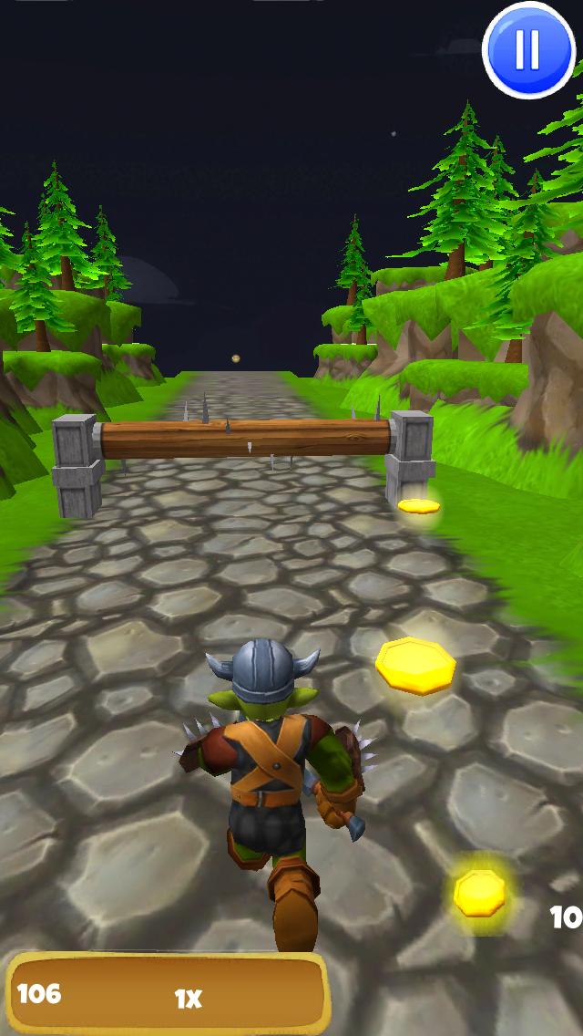 沿著石路沿著森林競爭獸人,收集金幣以解鎖一堆升級,其中包括更長的獎金,額外的生活甚至生存模式。但是,當您在森林中遇到危險到城堡時,請注意日誌,尖峰和其他障礙。