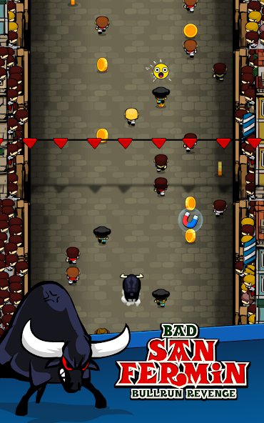 公牛,這是您的目標:確保沒有人到達巨大的鬥牛,盡快掩蓋盡可能多的地面,而不會絆倒障礙物並撞到聖經中的每個跑步者。