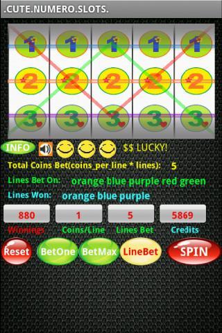 五個捲軸,五列列賽可愛的numero老虎機。微調的賭注,有更多機會贏得小小的贏得勝利的機會。賭至25分。出色的圖形,美麗的聲音效果。