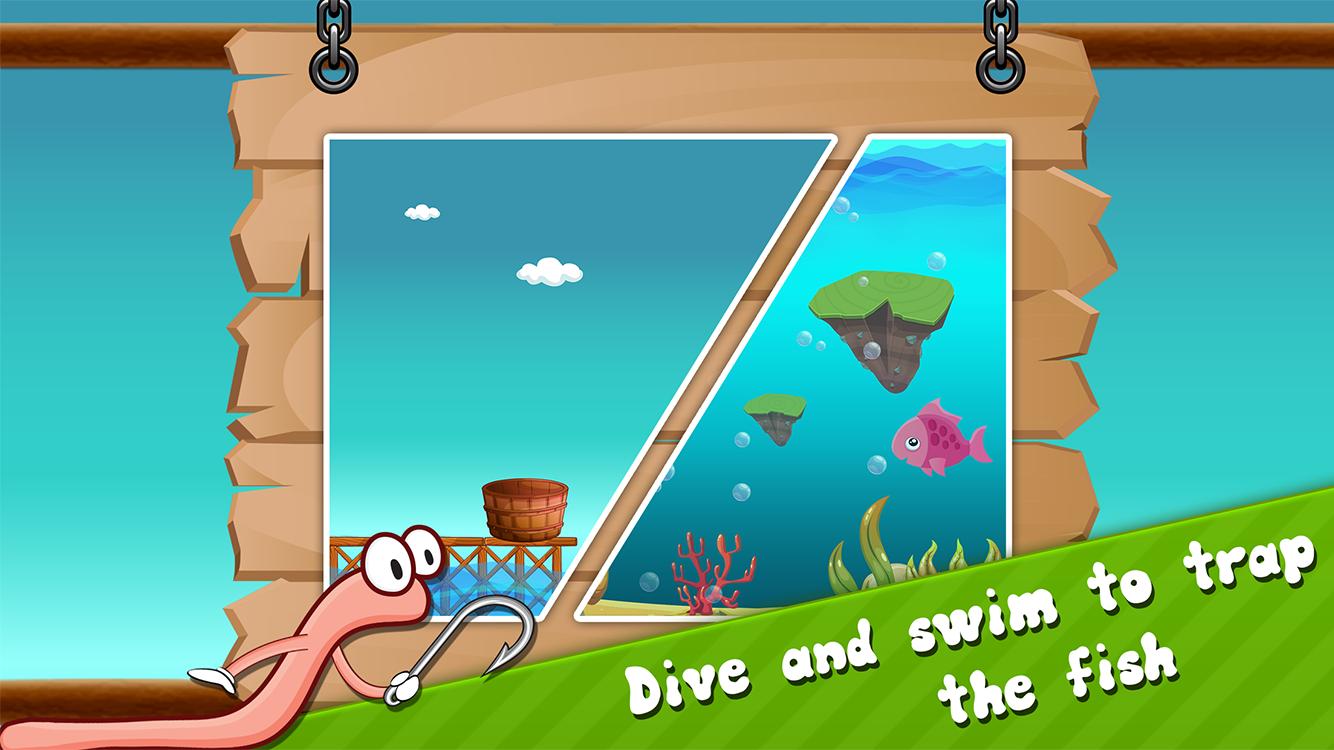 Hooky Worm是一個動畫的所有方向性遊戲角色,可以找到硬幣和魚類。通過每個層次的成功意味著要蠕蟲,從紅色衝浪板跳到木桶,然後脫離魚。每個層面都有新的安全和家庭娛樂冒險和新的釣魚方式。