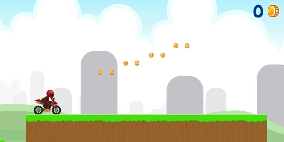 打開該遊戲後,只需在屏幕上點擊一次,即可輕鬆使用自行車跳動,或者在空中播放時再次點擊以與摩托車進行涼爽的背彈。目的是在死前捕獲所有您可以的硬幣。小心坑,岩石和石頭,它們可以輕鬆殺死您的騎自行車的人。